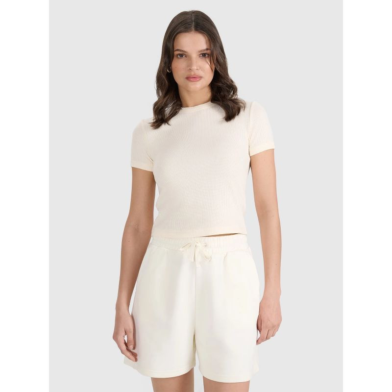 dámské tričko s krátkým rukávem se skvěle hodí k běžnému i sportovnímu nošení, má přiléhavý střih, který přiléhá k tělu a zvýrazňuje ženskou siluetu, a délku sahající až k linii boků.