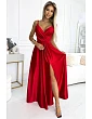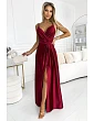Juliet - elegantní maxi dlouhé saténové šaty s rozparkem na nohou. Krásně tvarovaný výstřih a rozparek na sukni vytvářejí neobvyklou kompozici. Vyrobeno z lesklého, hladkého, mírně elastického saténu v zelené barvě. Šaty se skvěle hodí na svatbu, Silvestra, ples, karneval a další významné události. Vyrobeno v Polsku. Značka Numoco.