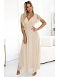562-3 NASTIA Dlouhé šaty s výstřihem a krátkými rukávy - ČERNÁ