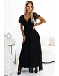 Elegantní zelené maxi šaty z elastické síťoviny s obálkovým výstřihem, průsvitnými rukávy a zavazováním v pase, které krásně zvýrazní vaši siluetu. Ideální na svatby a výjimečné příležitosti Numoco Basic, evropská výroba.