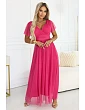 562-6 NASTIA Dlouhé šaty s výstřihem a krátkými rukávy - BEACH