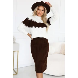 571-2 Dvoudílný svetr s vypasovanou sukní - čokoládový