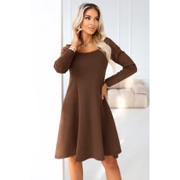 Čtvercový výstřih decentně zvýrazňuje krk a klíční kosti a dlouhé rukávy z nich dělají ideální model na podzim, zimu a brzké jaro. Čokoládová barva dodává stylizaci noblesu a zapadá do současných trendů. Šaty vypadají skvěle s kozačkami i na jehlových podpatcích - hodí se do práce, na schůzky, ale i na procházku nebo na kávu s přáteli.