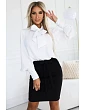578-2 Jedinečná halenka s dlouhými rukávy, vázáním a knoflíky - bílá se stříbrným vzorem