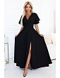 Elegantní černé maxi šaty s obálkovým výstřihem - Numoco