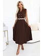 Přidání recenze k 596-4 Elegantní midi košilka se zlatými knoflíky a páskem - CHOCOLATE