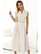 596-4 Elegantní midi košilka se zlatými knoflíky a páskem - CHOCOLATE