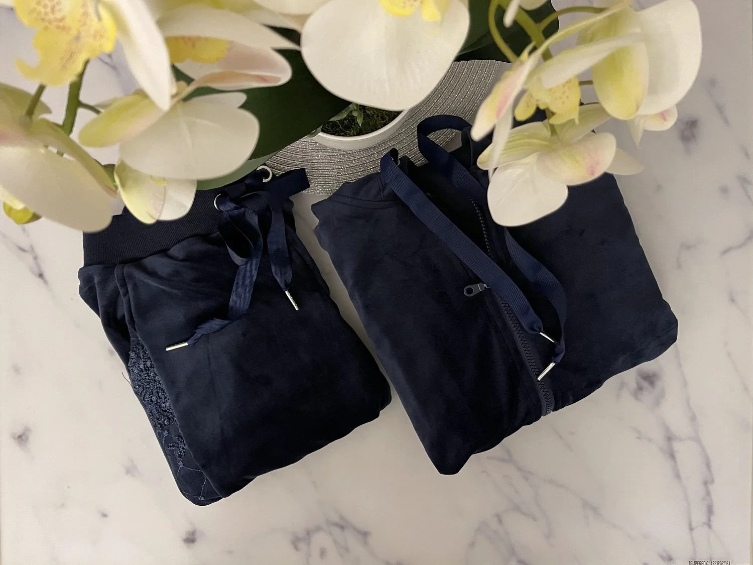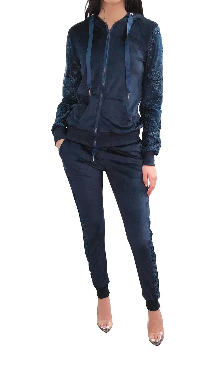 Znáte ten pocit, když po dlouhém dni v práci skočíte do pohodlné, měkké velurové teplákové soupravy? Ano! To je začátek vaší vytoužené relaxace! Vysoce kvalitní velur s jemným leskem, příjemný na dotek, lahodí oku a poskytuje maximální pohodlí. Získáte elegantní mikinu na zip s kapucí a kapsou a skvělé kalhoty na gumu s bočními kapsami a žebrovanými kotníky. Postarejte se o to, abyste vypadali krásně i doma! Rukávy a boky kalhot jsou zakončeny jemnou krajkou v barvě tepláků. Tepláková souprava vypadá skvěle i v kombinaci s oblíbeným tričkem. Není příliš silná, takže ji můžete nosit i mezi ročními obdobími. Složení: 100% polyester.