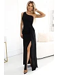 Maxi šaty na jedno rameno s leskem a rozparkem - lahvově zelené | Numoco - Polský výrobek