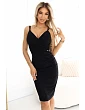 610-1 Oslnivé brokátové tužkové šaty s obálkovým výstřihem a ramínky - černé