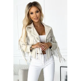 624-1 Krátká bunda s třásněmi z měkké ekokůže - béžová