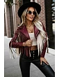 624-2 Krátká bunda s třásněmi z měkké ekokůže - vínová