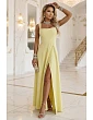 Přidání recenze k 633-2 AURELIA dlouhé šaty s rozparkem na nohou a výstřihem typu caro - lahvově zelené