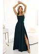 Elegantní maxi šaty s výstřihem a rozparkem - lahvově zelené | Numoco
