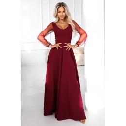 Elegantní vínově červené maxi šaty s tylovými rukávy - smyslná klasika od společnosti Numoco