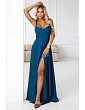 646-2 Dlouhé večerní šaty bez ramínek s rozparkem na nohou - námořnické barvy