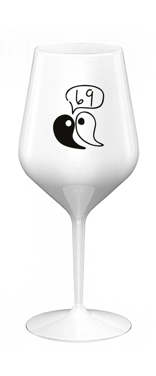 Nerozbitná bílá vinná sklenice s motivem 69 je skvělá na zahradu, pláž, výlet, piknik a parádu udělá i při kempování. Jelikož je vyrobená z kvalitního polykarbonátu je de facto nerozbitná. Je to luxusní kousek, s nímž si víno můžete vychutnat prostě kdekoliv. Mají ergonomický tvar, který příjemně padne do ruky a protože je lehká, usnadňuje to její přenášení. Je snadno skladovatelná a lehce se čistí. Díky svému designu si s ní můžete vychutnat doopravdy kdekoliv bezproblémové pití výborného vína.