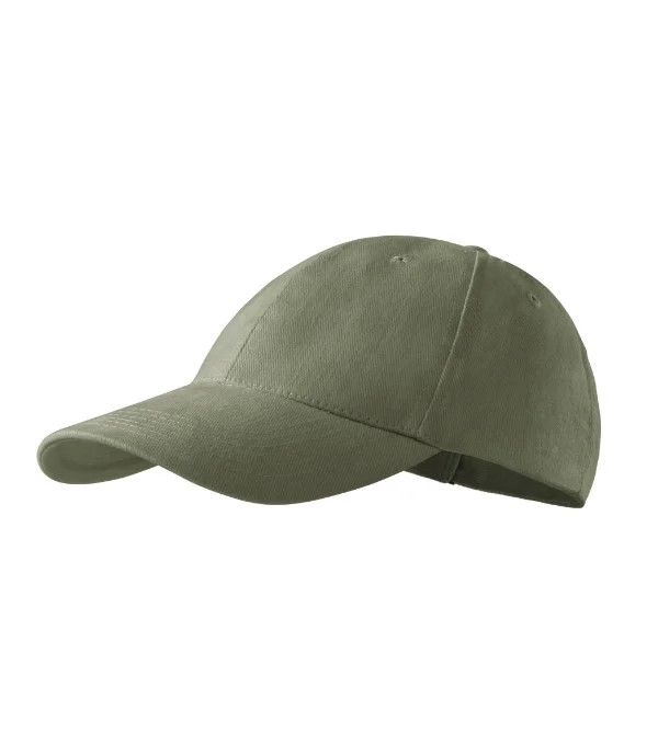šestipanelový střih vyztužené 2 přední panely prošívaný, lehce prohnutý kšilt obšité větrací otvory potící páska velikost nastavitelná mosazným klipem