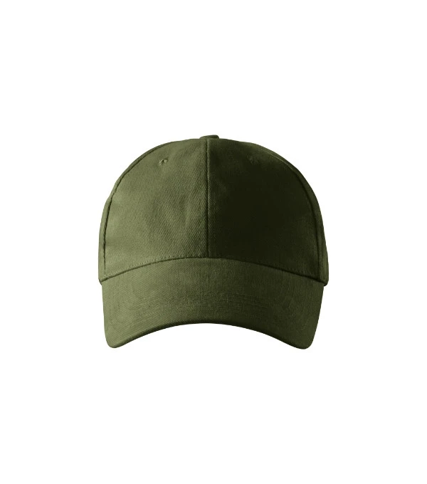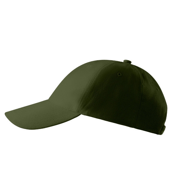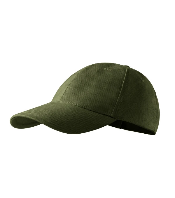 šestipanelový střih vyztužené 2 přední panely prošívaný, lehce prohnutý kšilt obšité větrací otvory potící páska velikost nastavitelná mosazným klipem