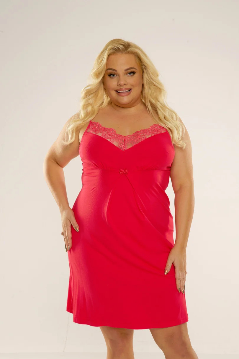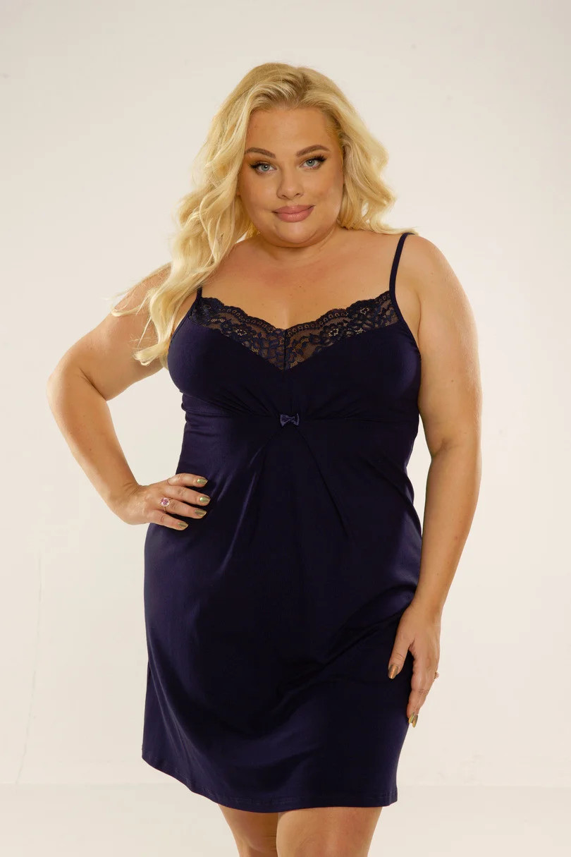 Efektivní dámská krátká košilka vyrobená z 94 % viskózy a přidaných elastických vláken. Jemné řasení na poprsí. V hlavní linii je síťovina zdobená květinovou výšivkou. Úzká elastická ramínka s možností nastavení.