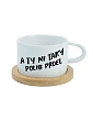 Hrnek má objem 200 ml, tak akorát na kávu nebo čaj, který ti dodá trochu klidu (nebo aspoň odstup). Ke každému hrníčku patří bambusový podtácek, který celý set hezky doplní a ochrání stůl.