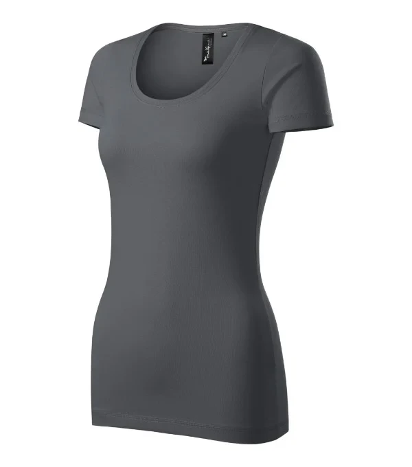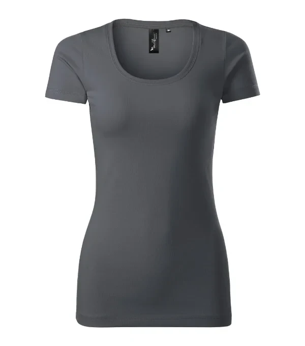 strečový materiál udržující stálost tvaru přiléhavý střih s bočními švy hlubší kulatý výstřih úzký lem průkrčníku z žebrového úpletu 1:1 s 5 % elastanu vnitřní část průkrčníku začištěna kontrastní páskou zpevnění ramenních švů páskou krátké přiléhavé rukávy dekorativní prošití