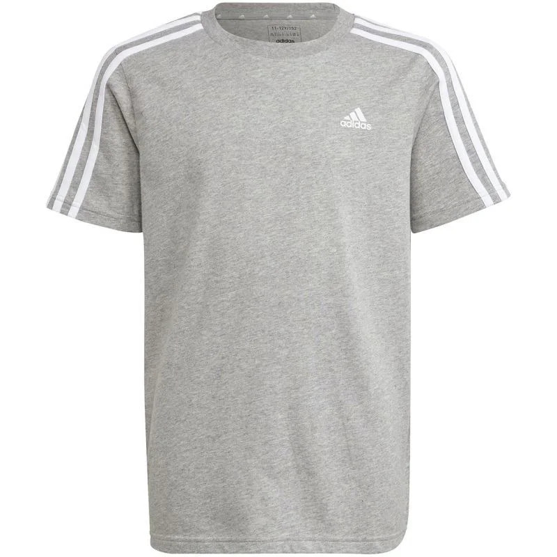 Dětské bavlněné tričko adidas Essentials 3-Stripes šedé IB1669