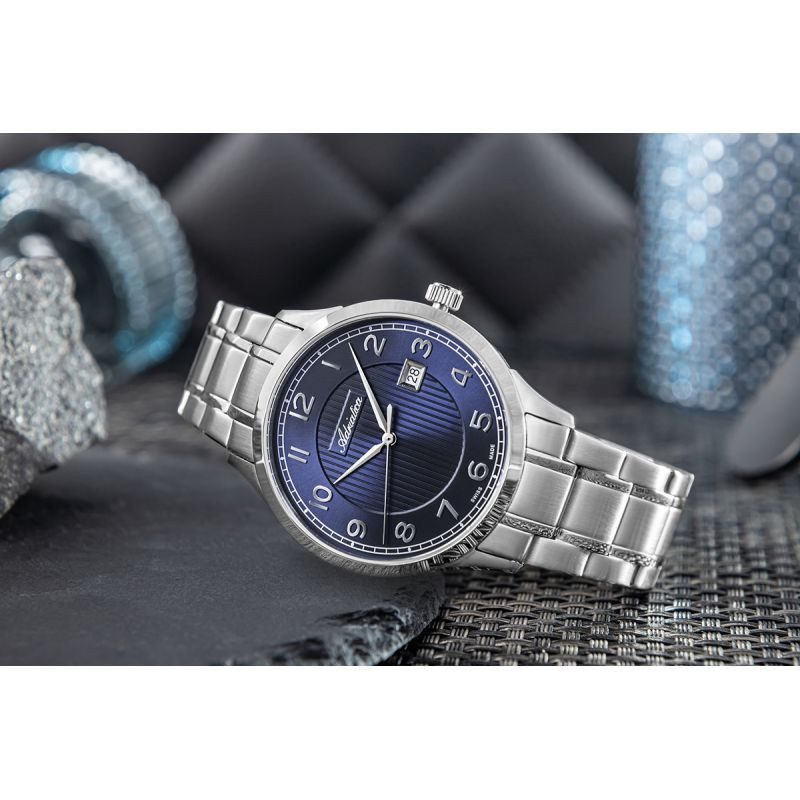 Męski zegarek Adriatica A8316.5125Q to harmonijne połączenie klasycznego wzornictwa i precyzji szwajcarskiego rzemiosła, stworzone z myślą o mężczyznach ceniących ponadczasową elegancję. W jego sercu pracuje niezawodny, kwarcowy mechanizm Swiss Made, który gwarantuje punktualność każdego dnia – bez kompromisów. Tarcza zegarka przyciąga wzrok głębokim granatem i eleganckim, pionowym giloszem w centralnej części, który dodaje jej trójwymiarowości i charakteru. Duże, srebrzyste cyfry arabskie kontrastują z tłem, zapewniając doskonałą czytelność, a harmonijnie wkomponowany datownik na godzinie trzeciej dopełnia całości, nie zaburzając czystej, klasycznej kompozycji. Koperta o średnicy 42 mm wykonana została z wysokiej jakości stali nierdzewnej, której subtelne linie podkreślają minimalistyczną estetykę. Całość zamknięto pod szkłem szafirowym zapewniającym podwyższoną odporność na zarysowania i zachowanie przejrzystości. Uzupełnieniem jest segmentowana bran