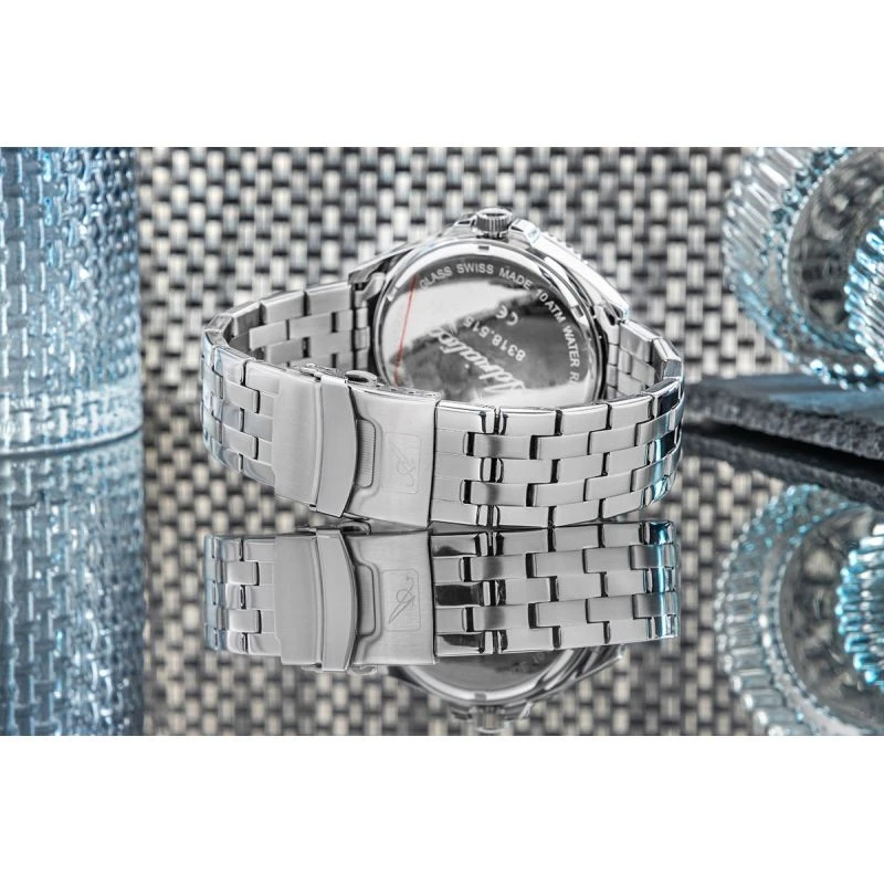 Vyroben z vynikající nerezové oceli, která kombinuje odolnost s luxusní povrchovou úpravou Jeho robustní konstrukce je nejen zárukou spolehlivosti, ale také jistotou, že hodinky budou perfektně ležet bez ohledu na to, co den přinese. Vzhled doplňuje precizní spona s vyraženým logem, která dodává hodinkám punc noblesy a jedinečnosti.