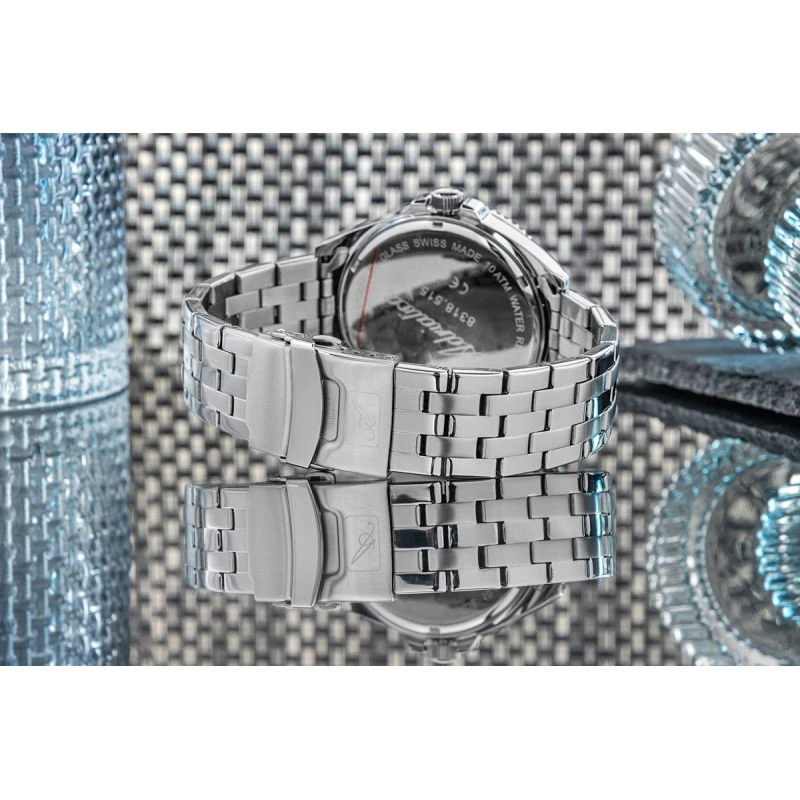 Vyroben z vynikající nerezové oceli, která kombinuje odolnost s luxusní povrchovou úpravou Jeho robustní konstrukce je nejen zárukou spolehlivosti, ale také jistotou, že hodinky budou perfektně ležet bez ohledu na to, co den přinese. Vzhled doplňuje precizní spona s vyraženým logem, která dodává hodinkám punc noblesy a jedinečnosti.