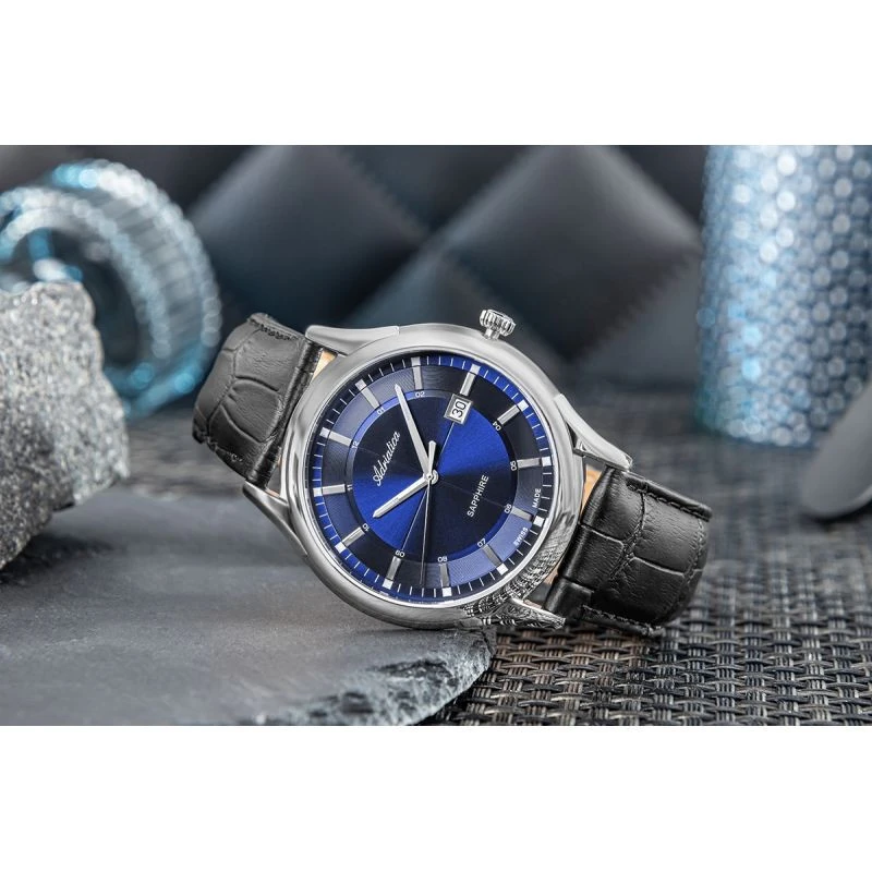 . Safírové sklo v hodinkách ADRIATICA je synonymem bezkonkurenční odolnosti proti poškrábání a křišťálové čistoty. Díky své výjimečné tvrdosti, která se vyrovná tvrdosti diamantu, účinně chrání ciferník před poškozením a každodenním opotřebením. Jeho antireflexní vrstva minimalizuje odrazy světla a zajišťuje vynikající čitelnost za všech podmínek.
