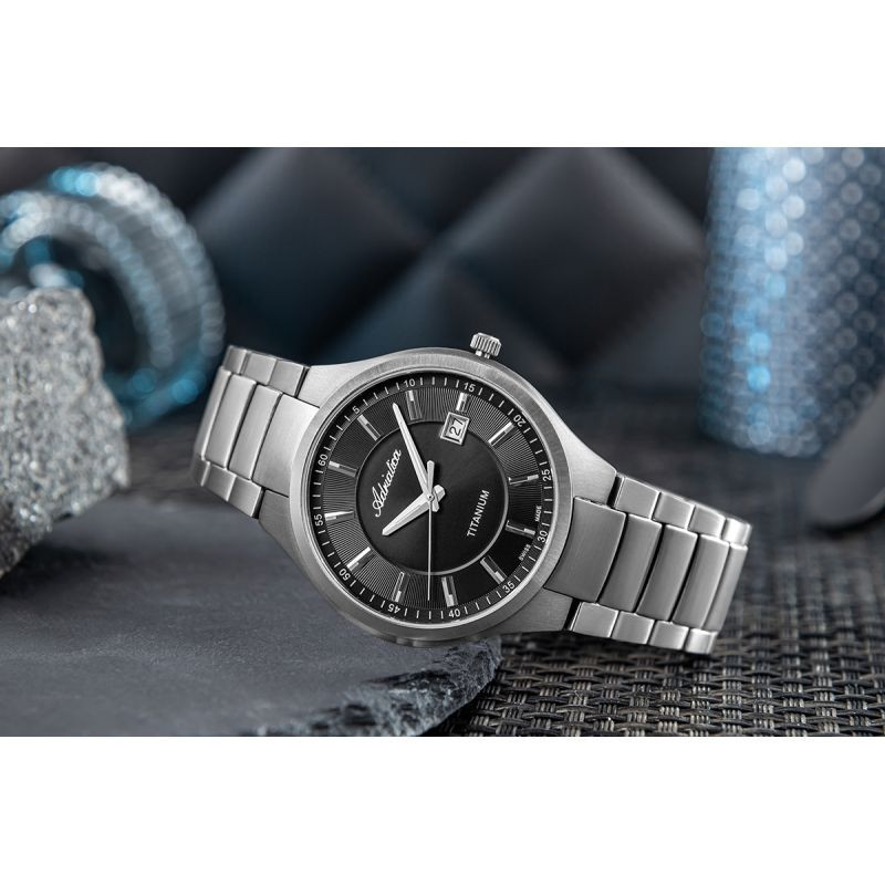 Model AdriaticaPremiereA8329.4114Q to wyjątkowe połączenie nowoczesnej formy i komfortu użytkowania. Jego koperta oraz bransoleta zostały wykonanezlekkiego i hipoalergicznego tytanu, który zapewnia trwałość, a przy tym niemal niewyczuwalną wagę na nadgarstku. Głęboka, czarna tarcza ozdobiona jest subtelnym szlifem słonecznym i eleganckimi, srebrnymi indeksami, które dodają zegarkowi wyrazistego charakteru i świetnej czytelności. W sercu zegarka pracuje mechanizmkwarcowySwiss Made – sprawdzony, precyzyjny, gotowy, by służyć przez lata, bez względu na to, jak intensywny bywa Twój dzień. Nie znajdziesz tu nadmiaru ozdobników – to design, który nie potrzebuje krzykliwych akcentów, by robić wrażenie. Tarczę osłania odporne na zarysowania szafirowe szkło, które skutecznie chroni to, co najważniejsze – estetykę, precyzję i spójność formy. Całość zamknięto w 41-milimetrowej kopercie z tytanu – wystarczająco wyrazistej, by zaznaczyć obecność na nadgarstku, ale