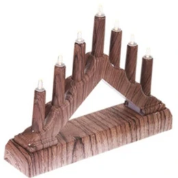 Moderní adventní svítidla mohou mít různé tvary, mohou být v glamour nebo ECO stylu, mohou být se třpytkami nebo se světly LED. Toto svítidlo má tradiční tvar a imituje 7 svíček usazených na dřevěném rámu.