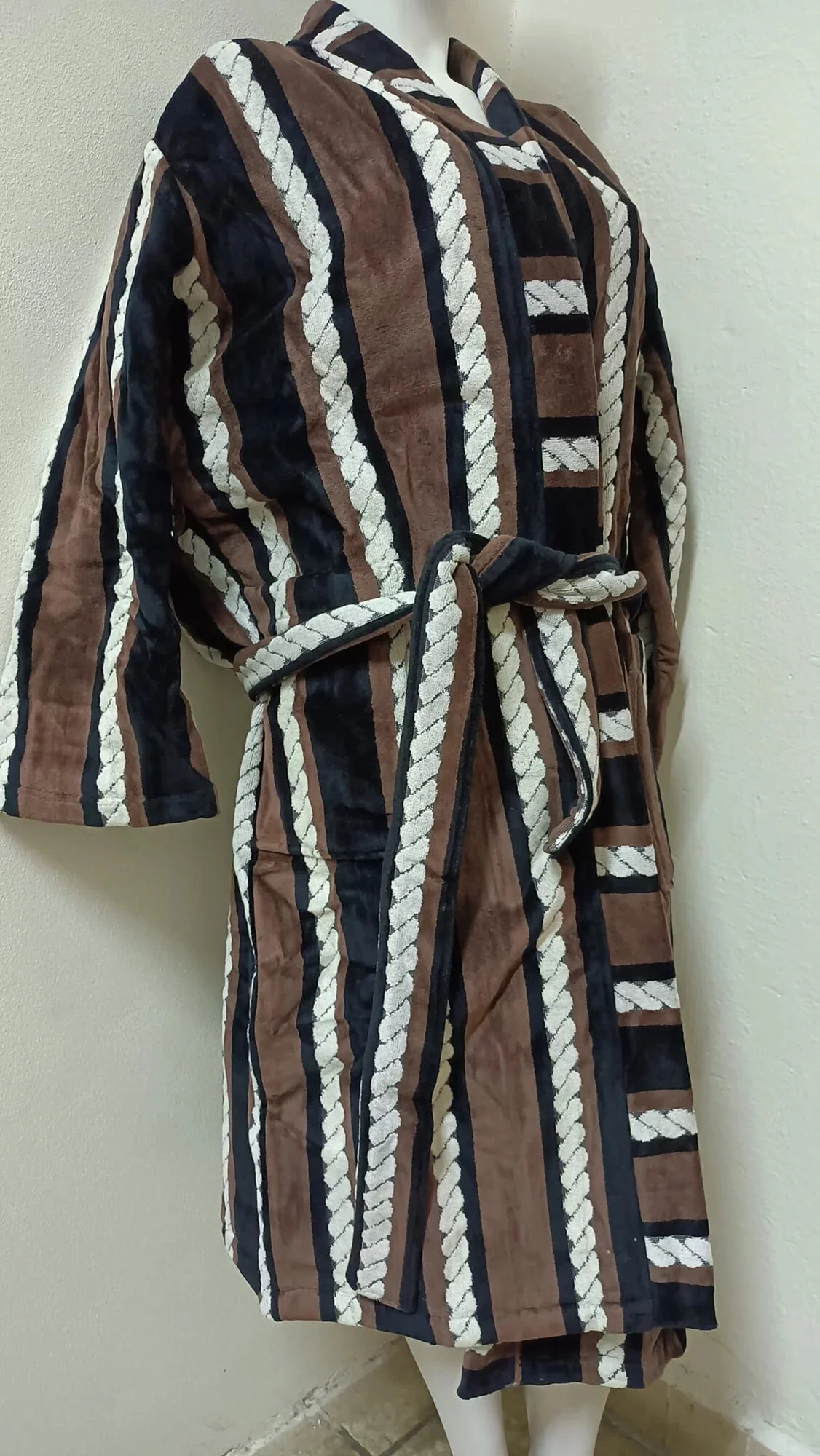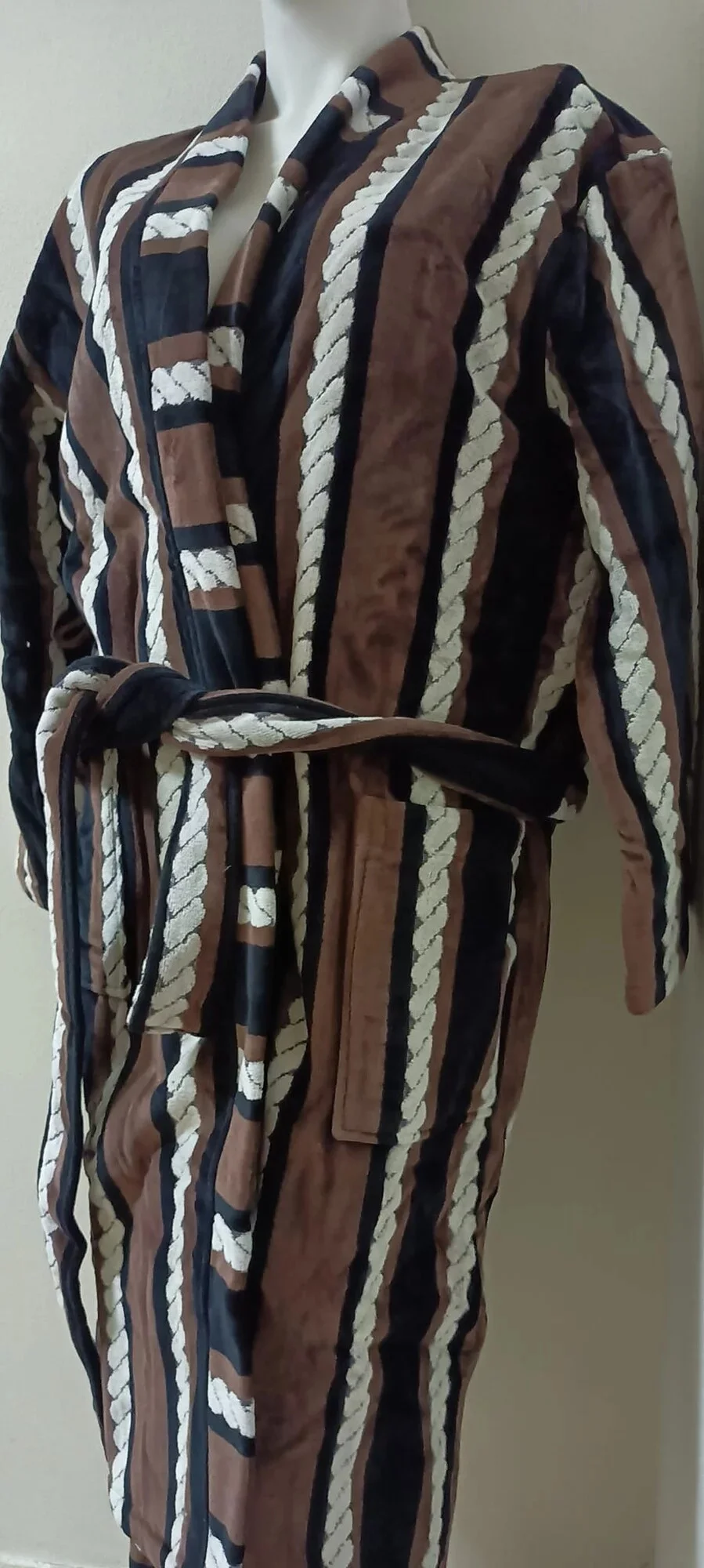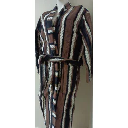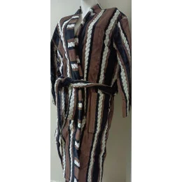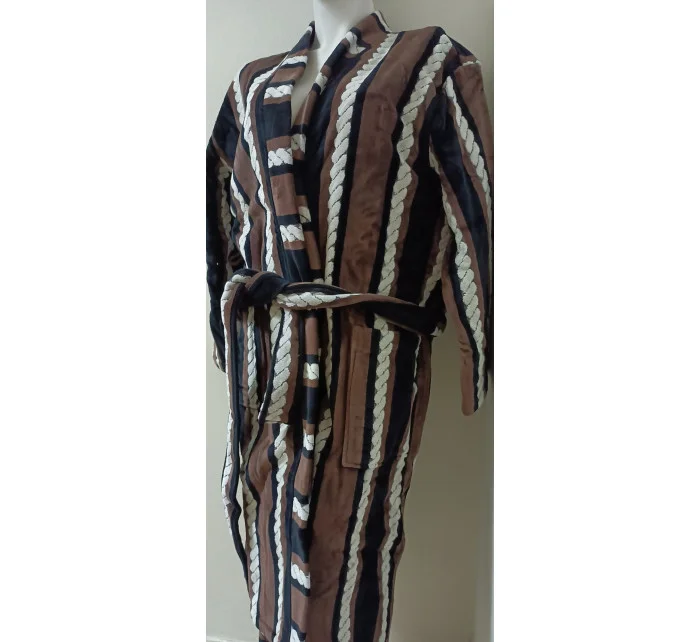 Pánský dlouhý župan se šálovým límcem, se zajímavým černo-bílo-hnědým potiskem.