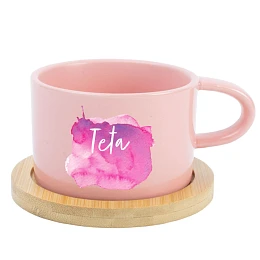Akvarelový otisk Teta - růžový hrníček makronka 200 ml
