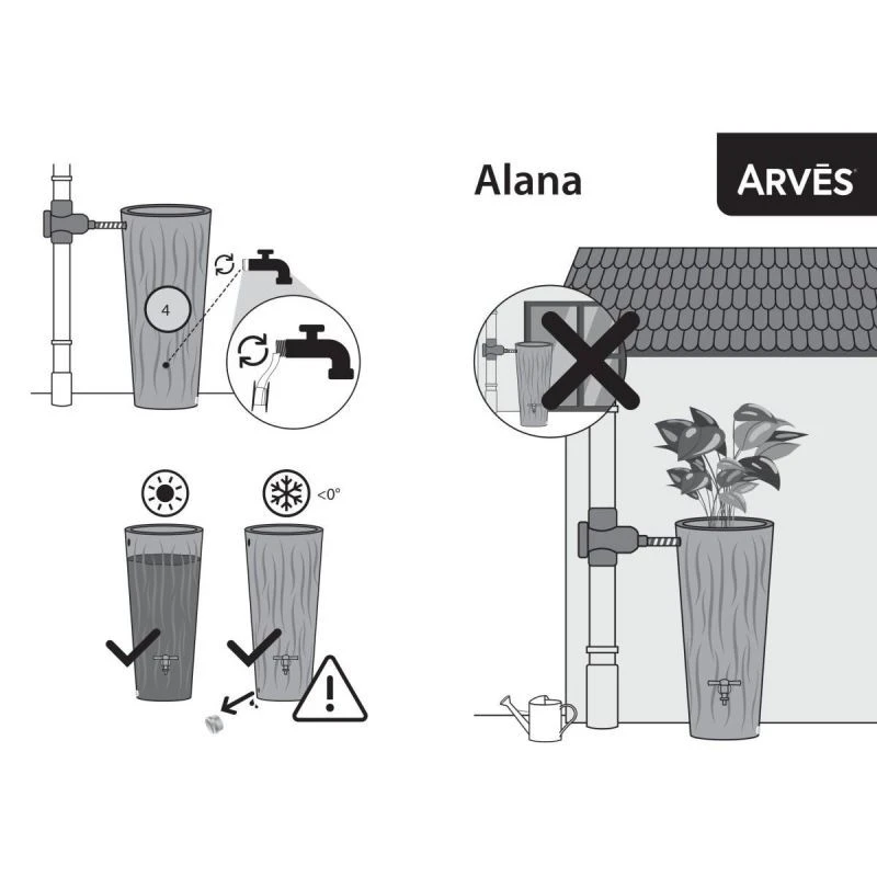 NÁDRŽ NA VODU ALANA FLOWER 160L ANTHRACITE z řady výrobků ARVES věnovaných životnímu prostředí vám umožní nejen shromažďovat a uchovávat vodu, ale bude také skvělým způsobem, jak eliminovat záplavy a louže, které se na vašem pozemku tvoří při silném dešti.