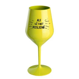 4. ALE UŽ FAKT POSLEDNÍ - žlutá nerozbitná sklenice na víno 470 ml