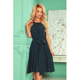 ALIZEE - Dámské šifonové šaty v lahvově zelené barvě s vázáním 350-4