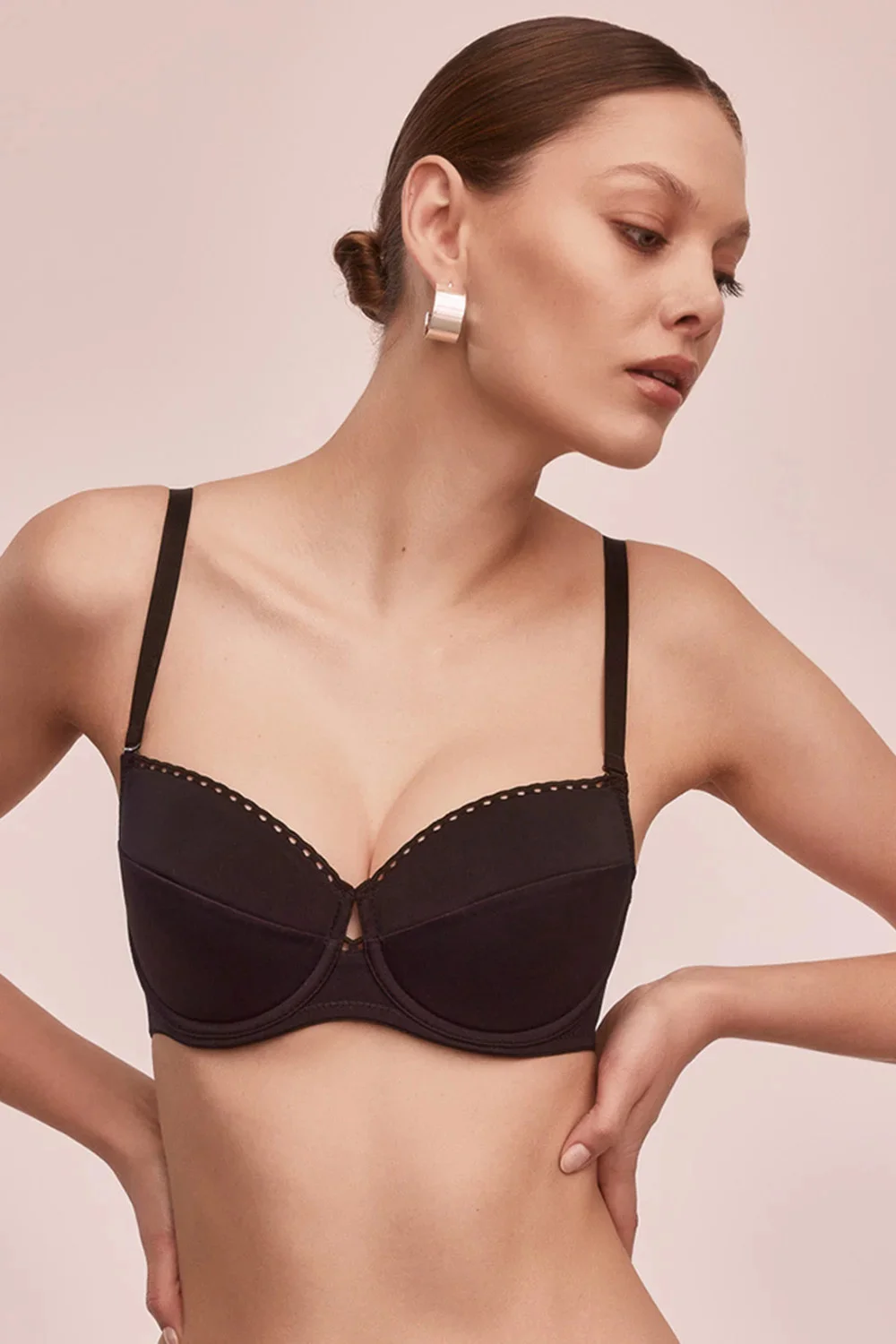 Podprsenka by Alles. Elena II U model. Má dráty, které prsa vhodně tvarují. Výrobek má nastavitelné, odnímatelné ramenní popruhy. Kovové háčky na popruh. Podprsenka se zapínáním na háčky a oči. Upevňovací bod: vzadu. Dvě řady svislých háčků. Tři stupně horizontálních háčků. Výrobek je vyroben ze 75 % z polyamidu, 15 % z elastanu a 10 % z bavlny. Výrobek pro ženy. Výhody produktu: klasický hladký základní komfort.