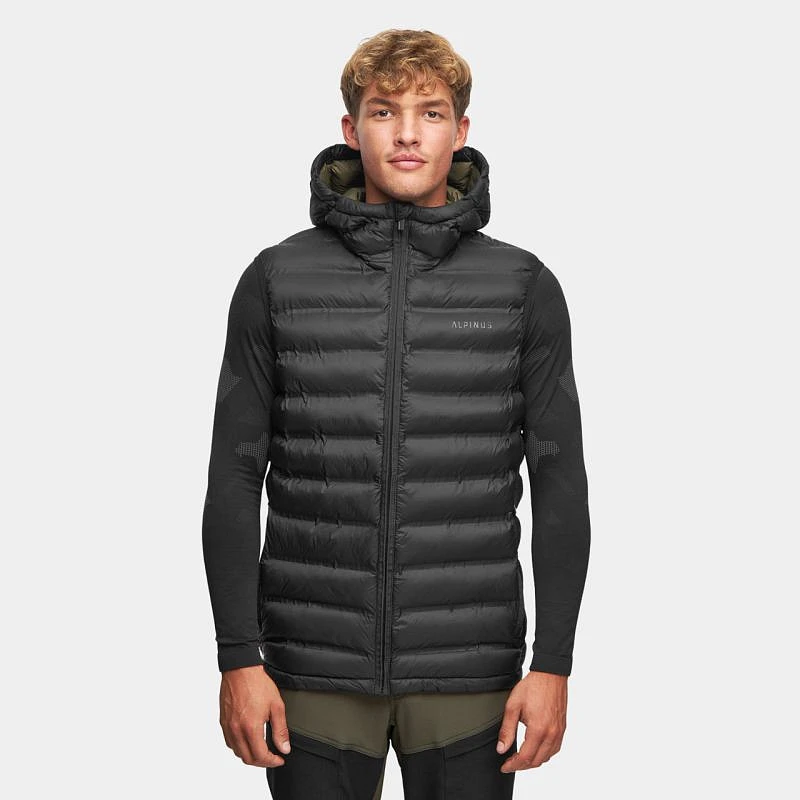 Pánská vesta Alpinus Artos černá Aktivní pánská vesta Alpinus s prošívanou konstrukcí zajistí pohodlí a teplo v chladných dnech během přechodného období. Technické údaje:- prošívaný klasický střih- certifikovaná ekologická izolace REPREVE® získaná z plastových lahví- nastavitelná kapuce- 5 kapes- manžety na bocích- pohodlné poutko pro pohodlné zavěšení vesty.
