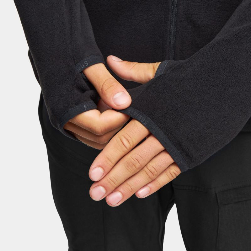 - Dvě praktické kapsy na zip, delší rukávy s otvory na palce pro udržení rukou v teple v chladnějších dnech a poutko na zádech nad vyšitým logem značky pro pohodlné zavěšení.