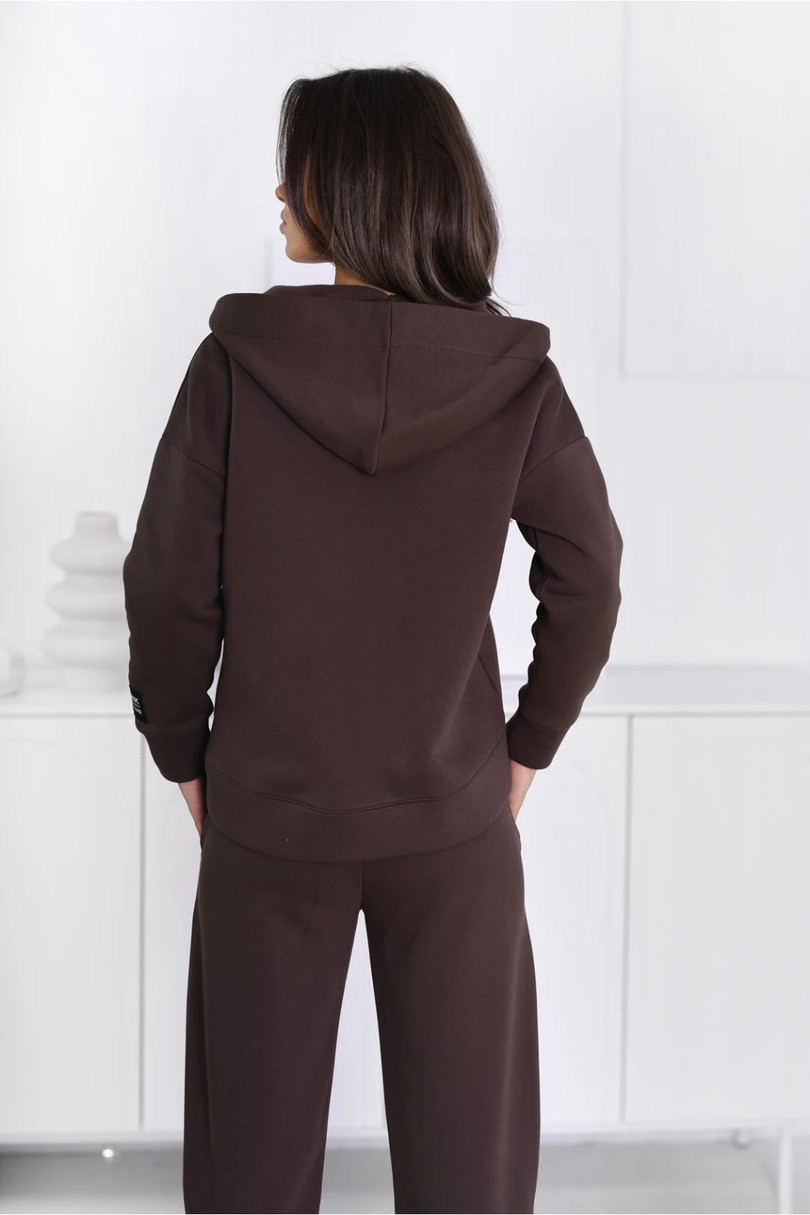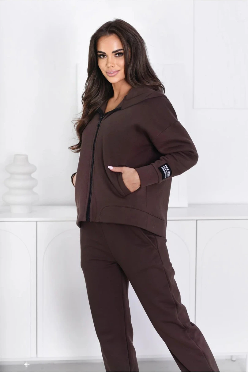 Postaw na połączenie wygody i nowoczesnego designu! Ta damska bluza rozpinana została wykonana z wysokogatunkowej, grubej bawełny drapanej, która zachwyca miękkością i komfortem noszenia. Delikatny meszek od wewnątrz zapewnia przyjemne uczucie ciepła, dzięki czemu bluza świetnie sprawdzi się podczas chłodniejszych dni, spacerów czy codziennych aktywności. Model wyposażono w praktyczny kaptur i dwie pojemne kieszenie, które pomieszczą najważniejsze drobiazgi. Na lewym rękawie znajduje się czarna, ozdobna naszywka, dodająca sportowego i nowoczesnego charakteru. Elastyczny dodatek elastanu sprawia, że bluza doskonale dopasowuje się do sylwetki, nie ograniczając ruchów. To idealnaEAN čárové kódy zboží jsou: