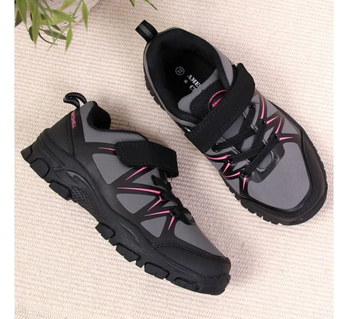 Trekingové boty American Club Jr AM902A s šedým páskem na suchý zip