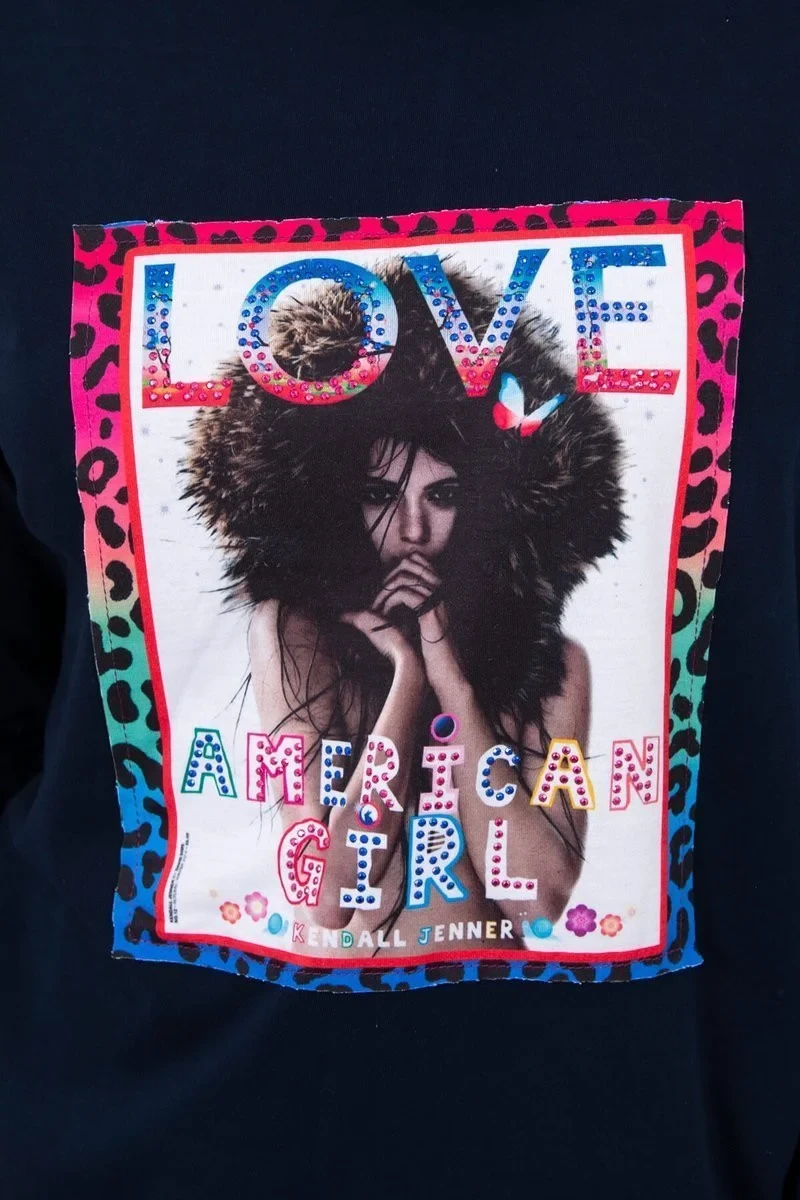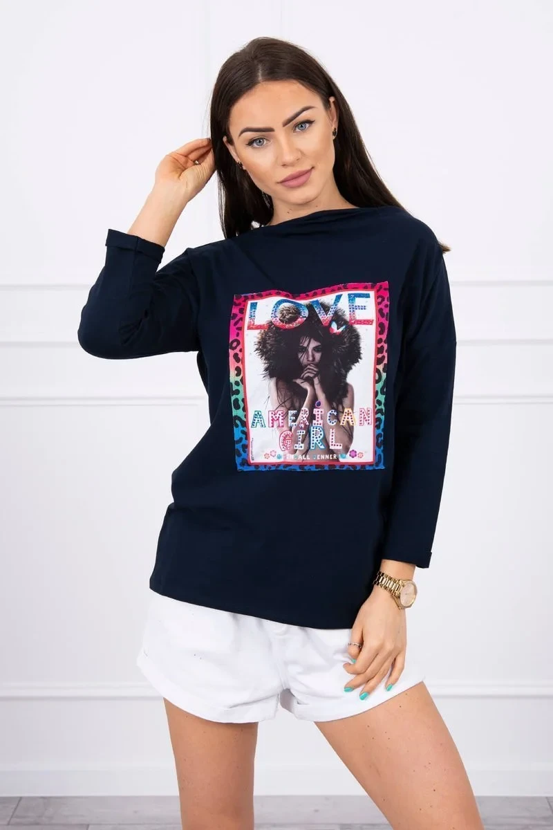 American Girl grafická halenka námořnická modrá S/M - L/XL