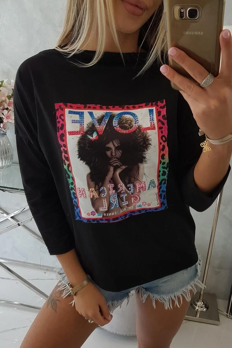 dívčí halenka černá S/M L/XL model 18743832 - K-Fashion