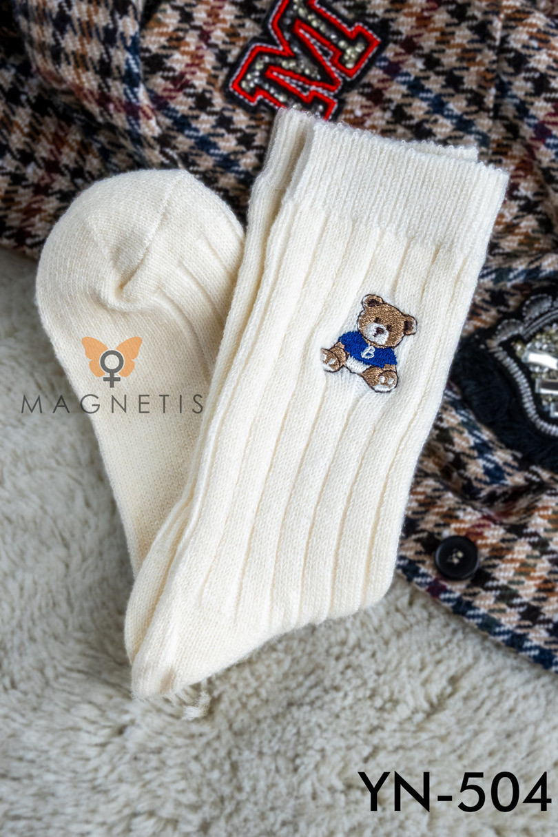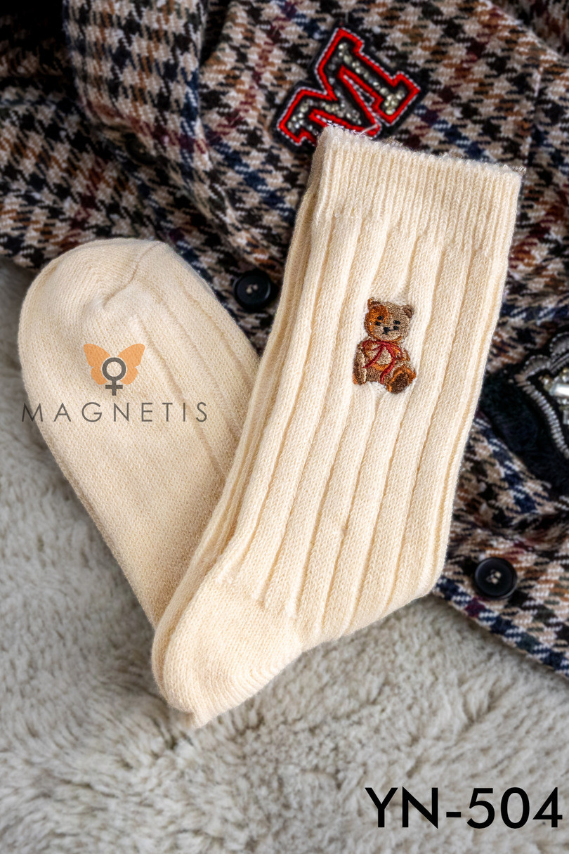 Skarpetki damskie MAGNETIS YN-504 to esencja przytulnego stylu w chłodne dni. Wykonane z wysokiej jakości mieszanki bawełny, wełny i wiskozy, są miękkie, ciepłe i przyjemne dla skóry. Ich prążkowana struktura gwarantuje dobre dopasowanie, a haftowany miś w sweterku z literką "B" dodaje uroku i modowego charakteru. Model występuje w 5 stonowanych kolorach, które doskonale komponują się z domowymi i casualowymi stylizacjami. Idealne na zimę, jako prezent lub po prostu – by poczuć się komfortowo.