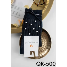 Skarpetki QR-5003 od Magnetis to idealne połączenie elegancji i codziennego komfortu. Wykonane z wysokogatunkowej bawełny z dodatkiem elastanu, są miękkie, elastyczne i przyjemne dla skóry. Ich wyjątkowy design przyciąga wzrok – ozdobione są subtelnymi perełkami oraz skórzaną kokardką, które dodają stylizacji kobiecego uroku i szyku.Delikatny dzianinowy wzór w stylu „warkocz” sprawia, że skarpetki prezentują się bardzo stylowo – zarówno w zestawie z botkami, jak i jako akcent domowego looku. Idealne na prezent lub jako dodatek do jesienno-zimowej garderoby.