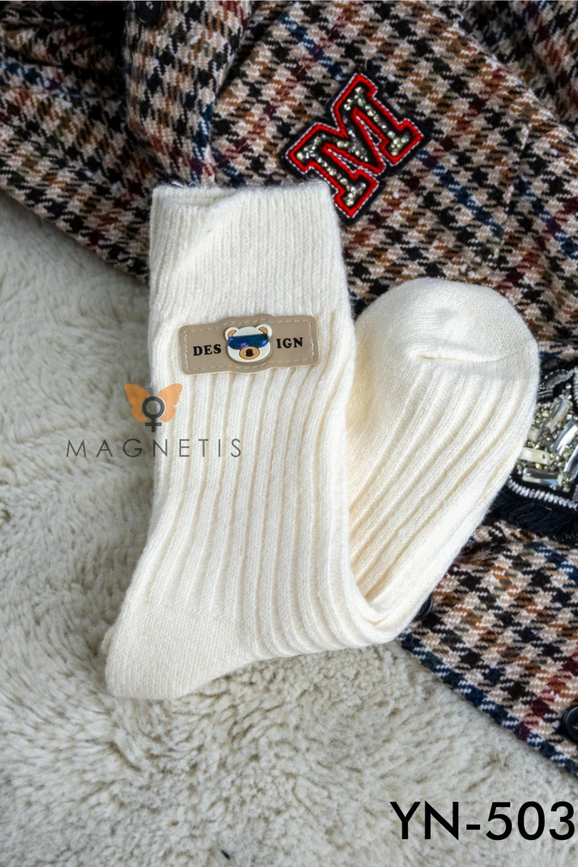 Skarpetki YN-5032 od Magnetis to idealne połączenie komfortu, jakości i uroczego stylu. Wykonane z miękkiej mieszanki bawełny, wełny i wiskozy, zapewniają przyjemne ciepło i wygodę przez cały dzień. Charakterystyczną cechą tego modelu jest stylowa naszywka z misiem w okularach i napisem DESIGN, która dodaje im młodzieżowego i modowego charakteru.Grubszy, prążkowany materiał doskonale sprawdza się w chłodniejsze dni – idealny do botków, kozaków, a także do noszenia po domu. Wybierz swój ulubiony kolor spośród klasycznych odcieni: ecru, brąz, karmel, czerń.