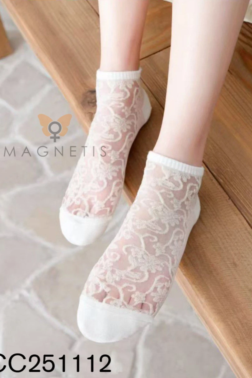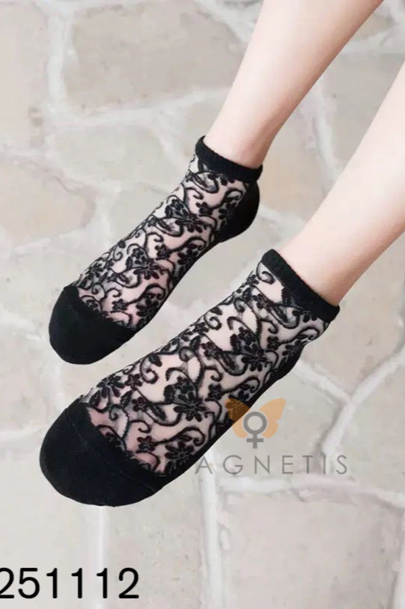 Stopki damskie Magnetis CC-251112 z aplikacją to elegancki i zmysłowy model o transparentnej strukturze z efektownym, kwiatowym wzorem. Delikatna siateczka w połączeniu z ozdobnym, czarnym haftem tworzy wyjątkowy design, który doskonale podkreśla kobiecy styl. To wzorzyste stopki damskie idealne do balerin, loafersów oraz półbutów, kiedy chcesz połączyć wygodę z modnym akcentem. Model wykonany jest z połączenia bawełny (50%) i poliestru (45%), co zapewnia komfort noszenia oraz trwałość materiału. Dodatek elastanu (5%) odpowiada za elastyczność i idealne dopasowanie do stopy. Stopki dobrze przylegają, nie zsuwają się i zachowują swój kształt nawet po wielokrotnym praniu. Transparentna część z ozdobnym wzorem nadaje lekkości i elegancji każdej stylizacji. Stopki Magnetis CC-251112 to doskonały wybór dla kobiet, które cenią stylowe detale, wysoką jakość wykonania i komfort użytkowania na co dzień.