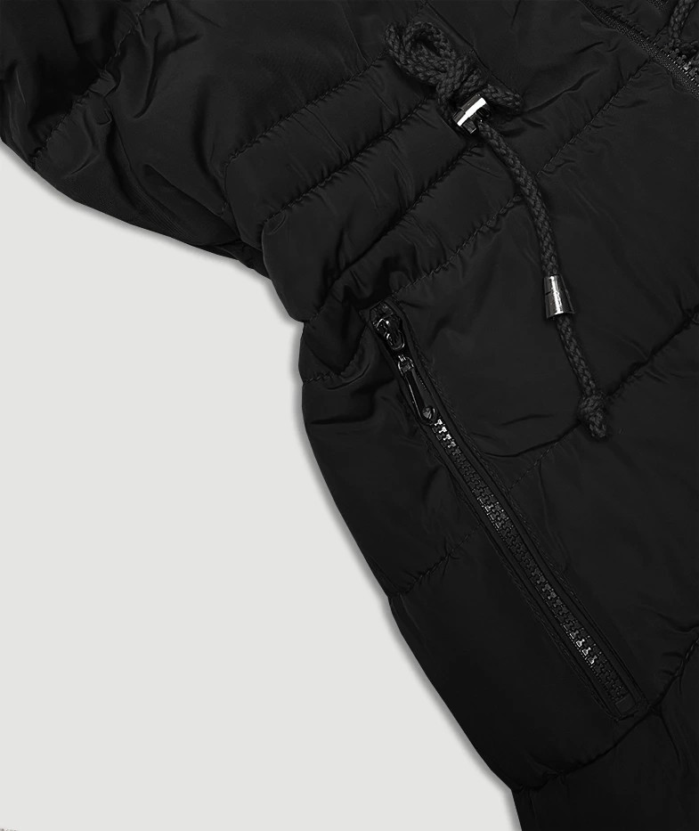 Bunda je zateplená syntetickou péřovou výplní, má dvě kapsy a zapíná se dvousměrným zipem. Model má kapuci olemovanou kožešinou. Kapuci i kožešinu je možné odepnout. V pase modelu je stahující šňůrka. Bunda má délku do poloviny stehen.